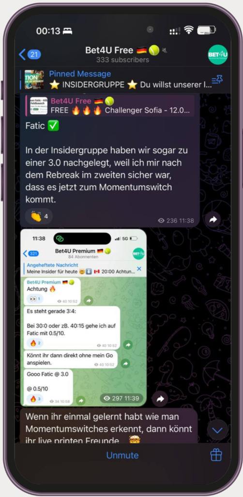 Tennis isn’t about guessing, it’s about precision. That’s exactly what our VIP channel delivers. For the first 30 days, you can step inside completely free. Copy the insights, test the strategies, and watch the matches with a whole new perspective — all without spending a cent. See how sharp analysis changes the game. After a month, you’ll know if you ever want to watch tennis any other way.